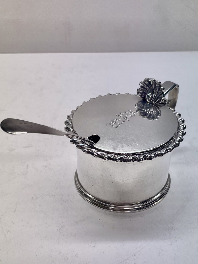 Dome lid with finial gadroon edge Mustard Pot, Initial “M” to front, shell thumbpiece. London 1837 by B.D, 145 grams £750