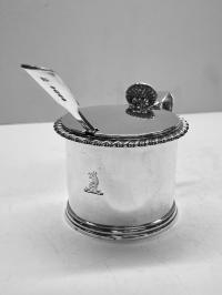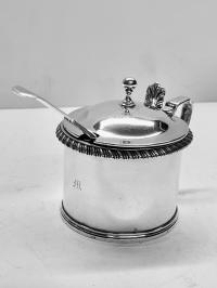 Large heavy and early – for this style-gadroon edge drum Mustard Pot (erasure to Lid), made in London in 1805 By Robert Sharp, 226 grams £900