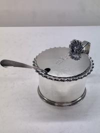 Gadroon edge Mustard Pot, engraved with Prince of Wales feathers crest to lid. Made in London in 1831 by Edward Barnard & sons. 133 grams £900