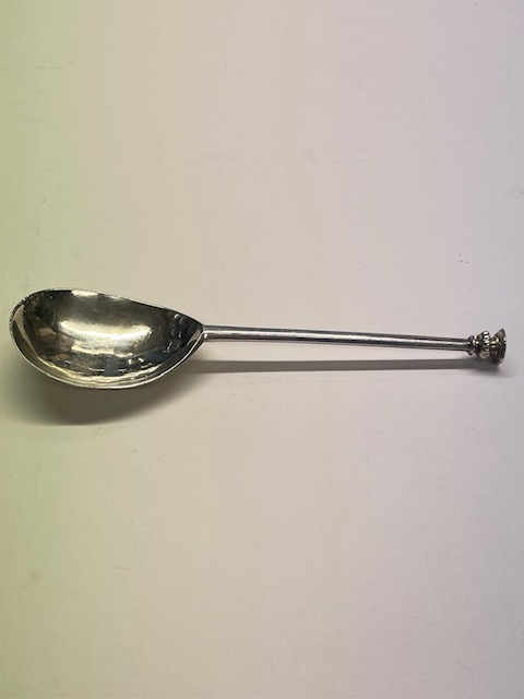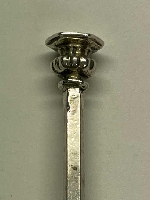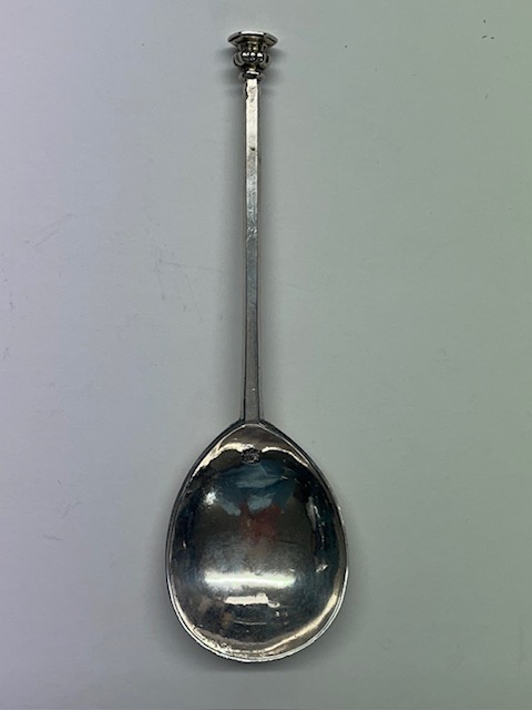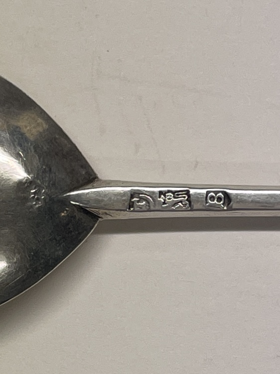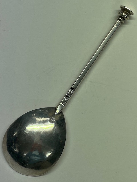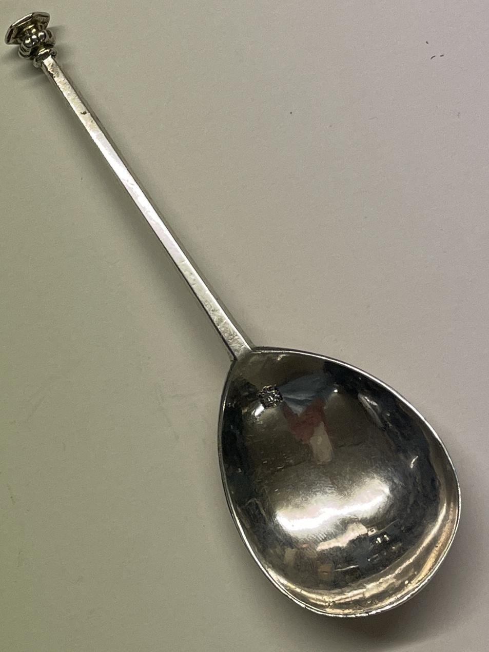A fine Elizabeth I, hexagonal seal top spoon, made in London 1599, maker Crecent enclosing a T.