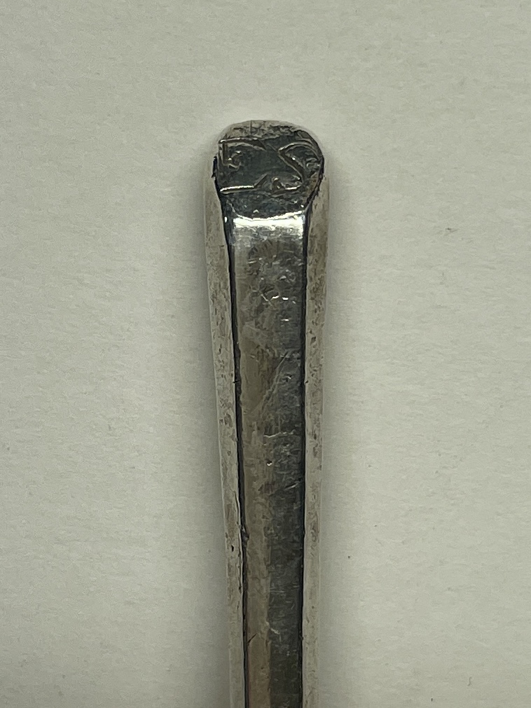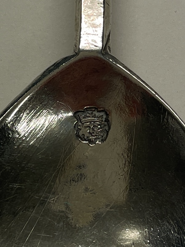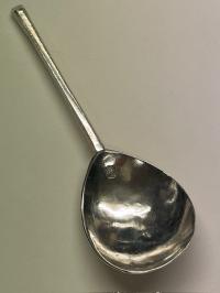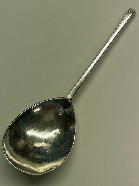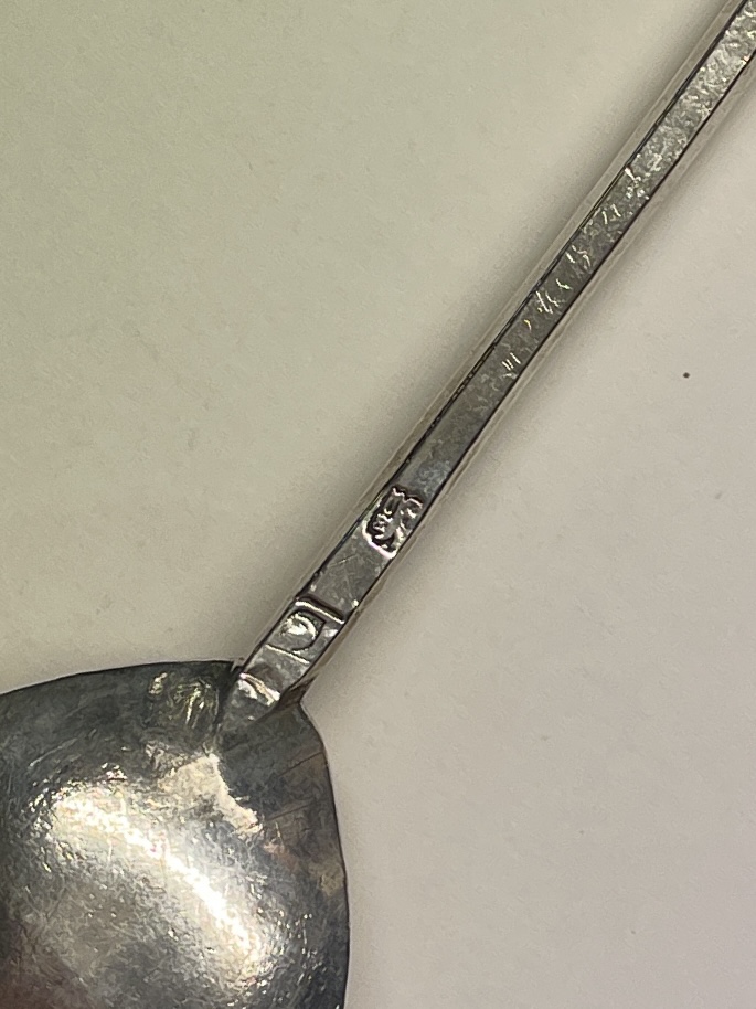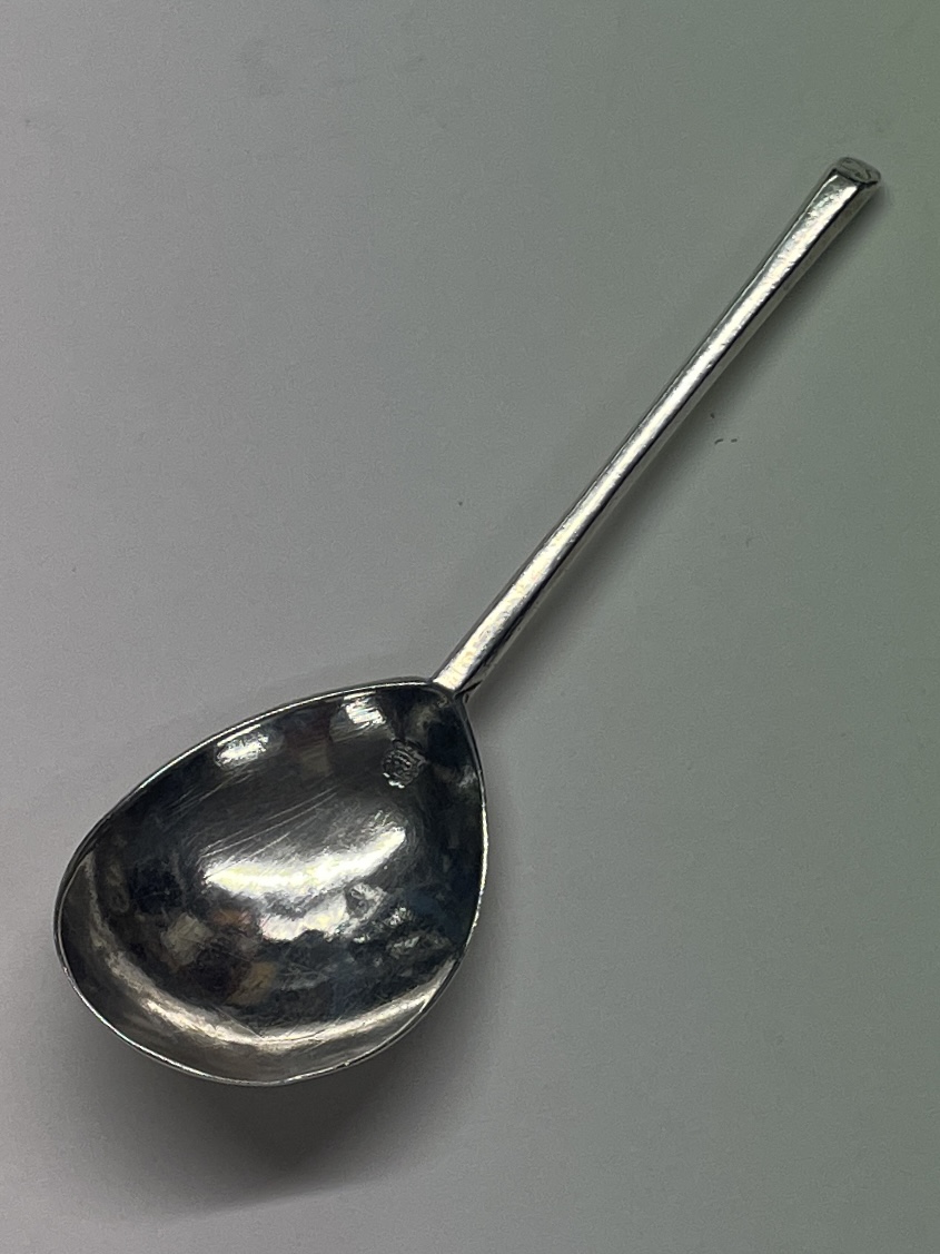 A slip top spoon initialled ES on terminal was made in London 1634 by Daniel Cary. The spoon measures 16cm in length.
