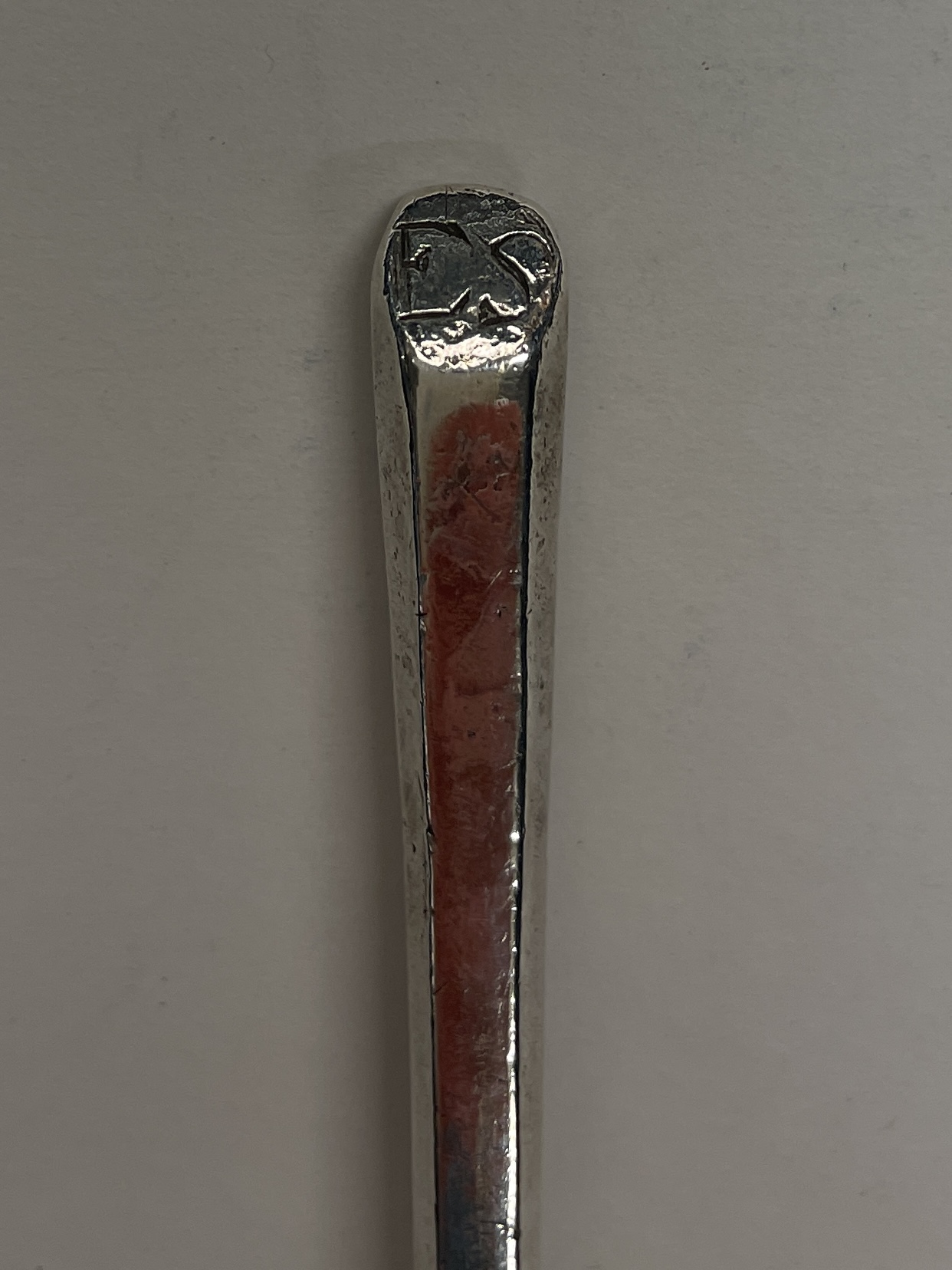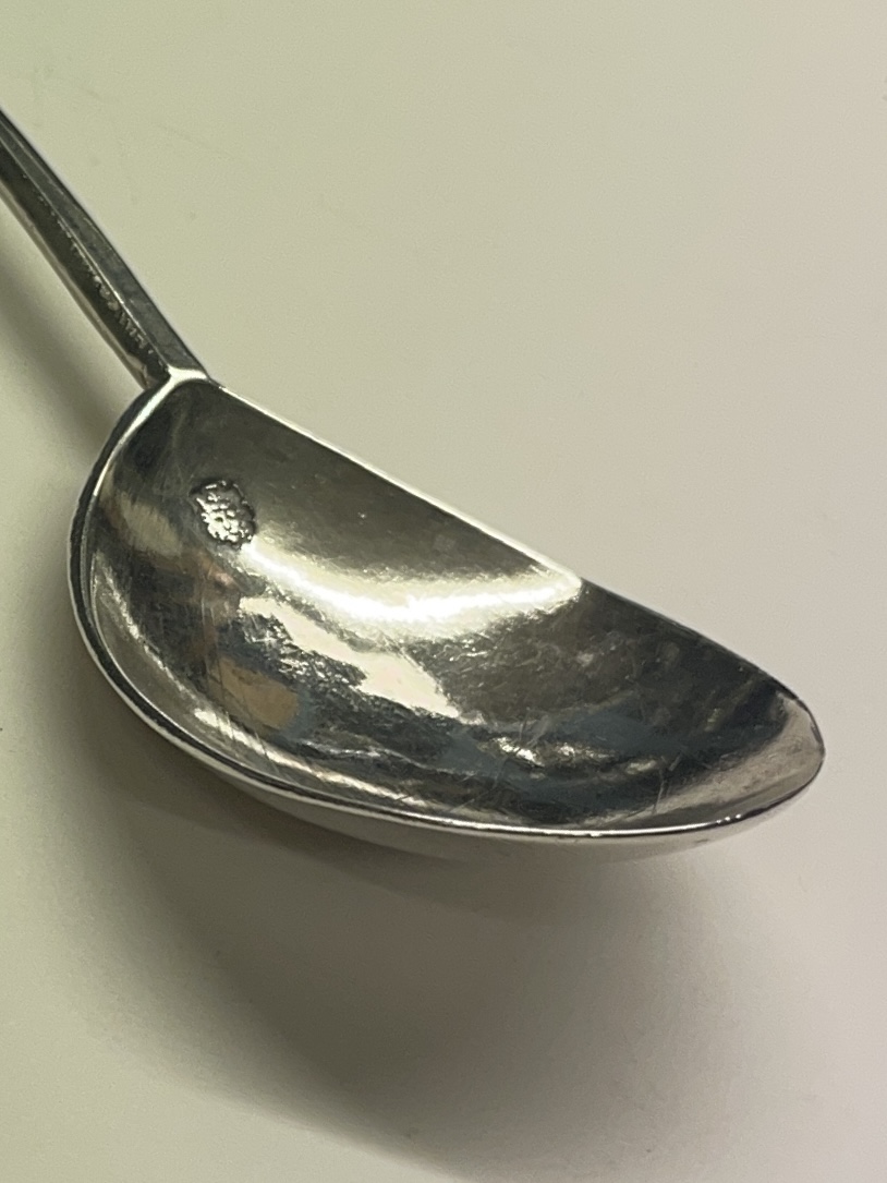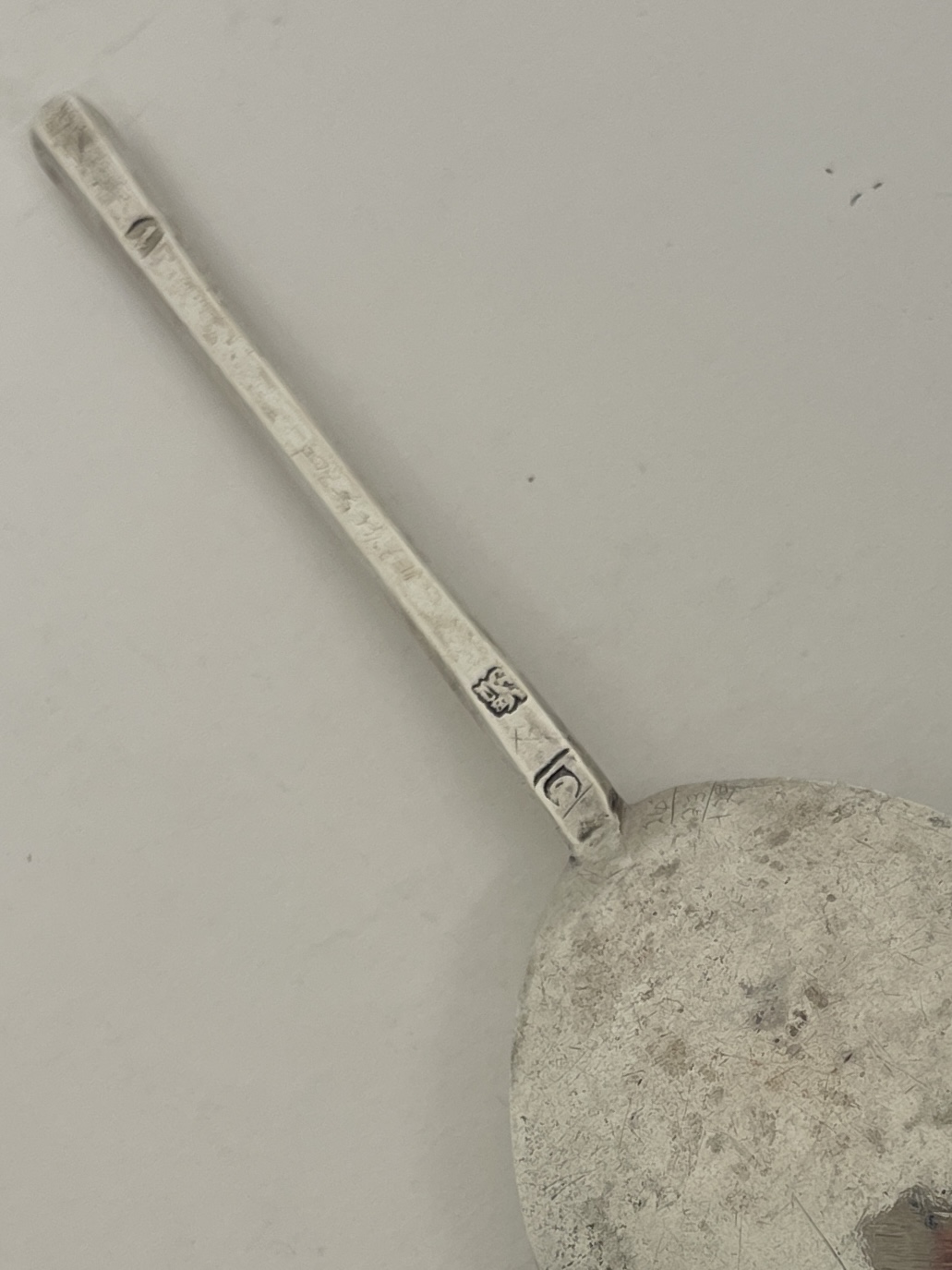 A slip top spoon initialled ES on terminal was made in London 1634 by Daniel Cary. The spoon measures 16cm in length.